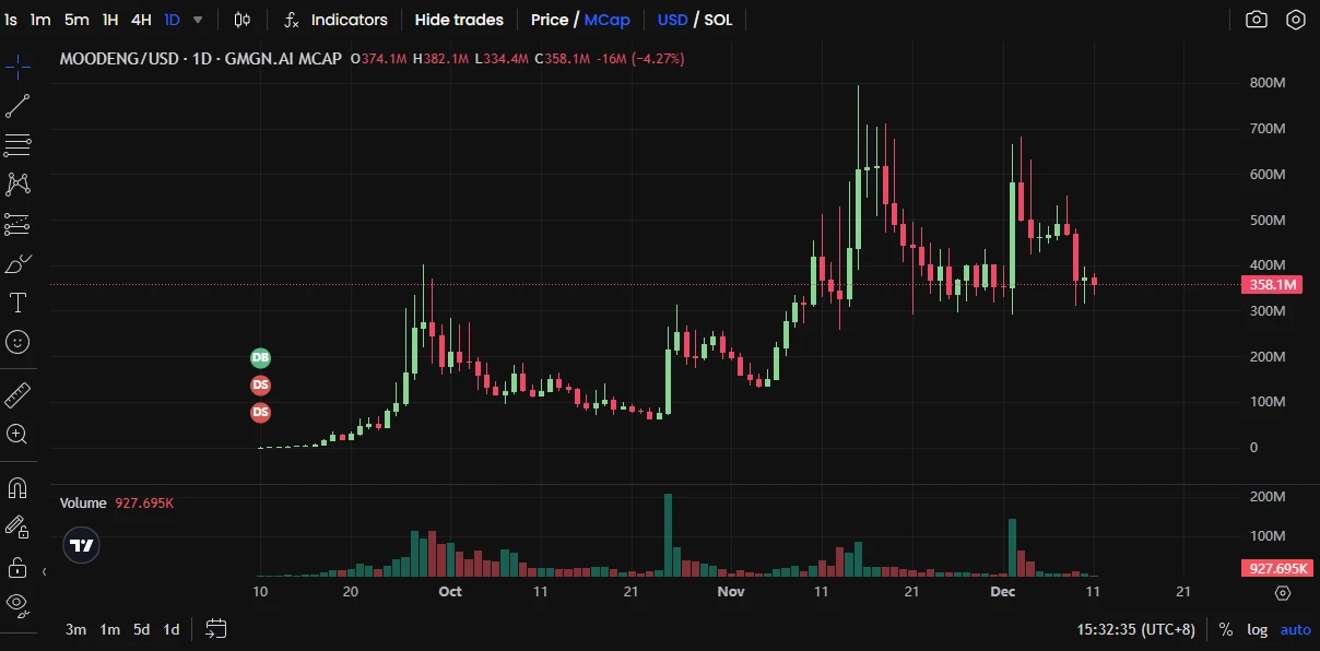 据 GMGN 数据 ,MOODENG 市值从最高一度突破 7 亿美元,目前市值为 3.7 亿美元。