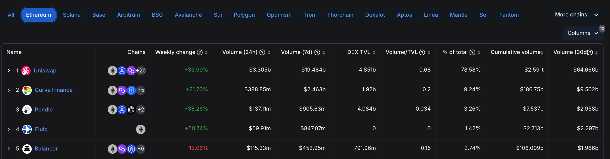 因此,我们可以得出目前以太坊除了面临外患(Solana)外,也面临内忧(自家 L2)的资金争夺,这一情况更可能在 Uniswap 推出自家以太坊 L2 「Unichain」后更严重,毕竟 Uniswap 占以太坊交易量的比例高达 78.58%。