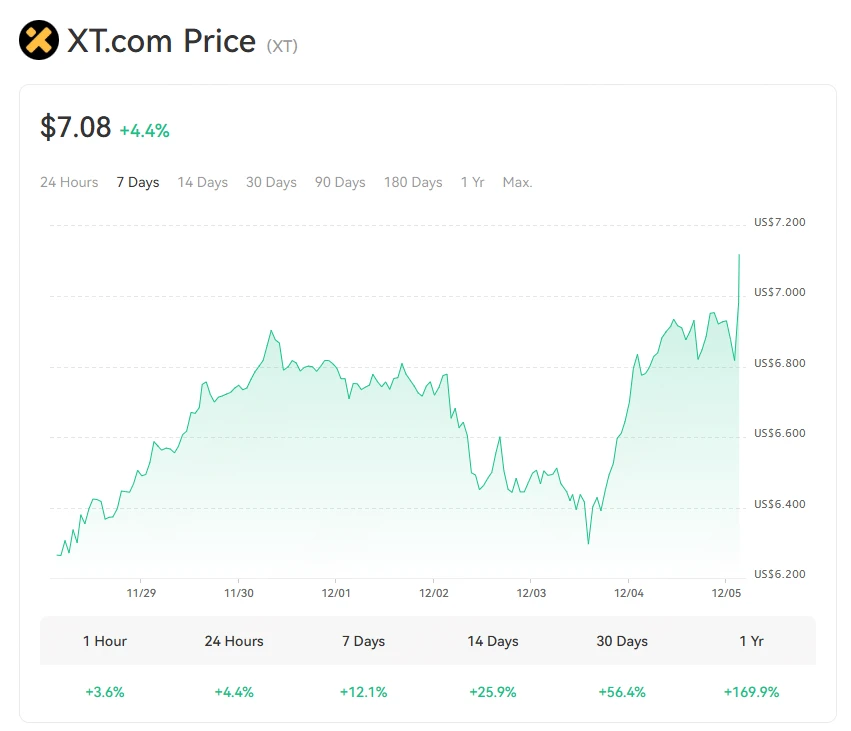 突破新高:XT 代币价格突破 7 美元