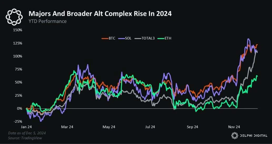 2024 年对加密市场来说是一个不寻常的年份。一方面,大多数主要币种恢复到了历史高点,山寨币市场整体也表现出色。