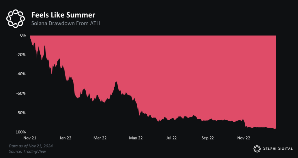 从高峰到谷底,SOL 经历了 96% 的跌幅。