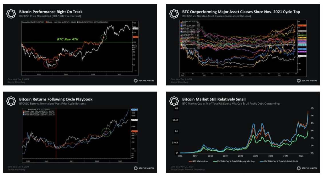 15 个月前,我们开始坚定地表达对这一牛市周期的信心。去年的报告预测 BTC 将在 2024 年第四季度创下新高。