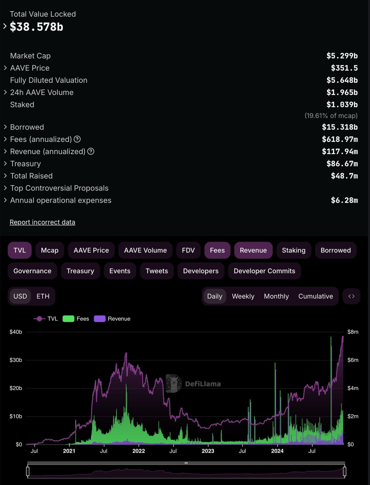 以上加密原生项目除与特朗普的关联外,本身也拥有不错的基本面,更易「价值投资」。如 Chainlink 为行业领先的预言机、同时在发力代币化、跨链等方向;Aave 是链上份额最大的借贷协议,目前项目多项指标都为历史最高,而代币价格却不到历史最高价的一半 ...