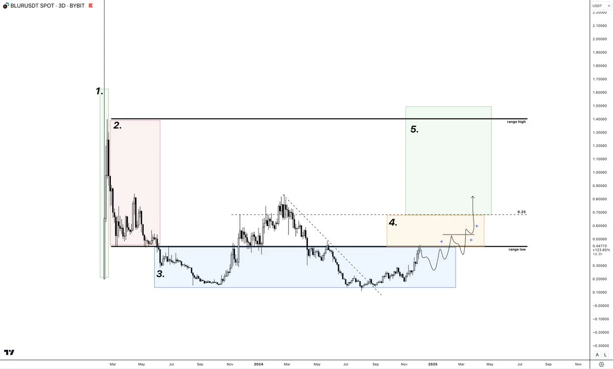 在这些利好事件的推动下,结合当前市场和图表的表现,BLUR 可能会重新受到市场的关注。