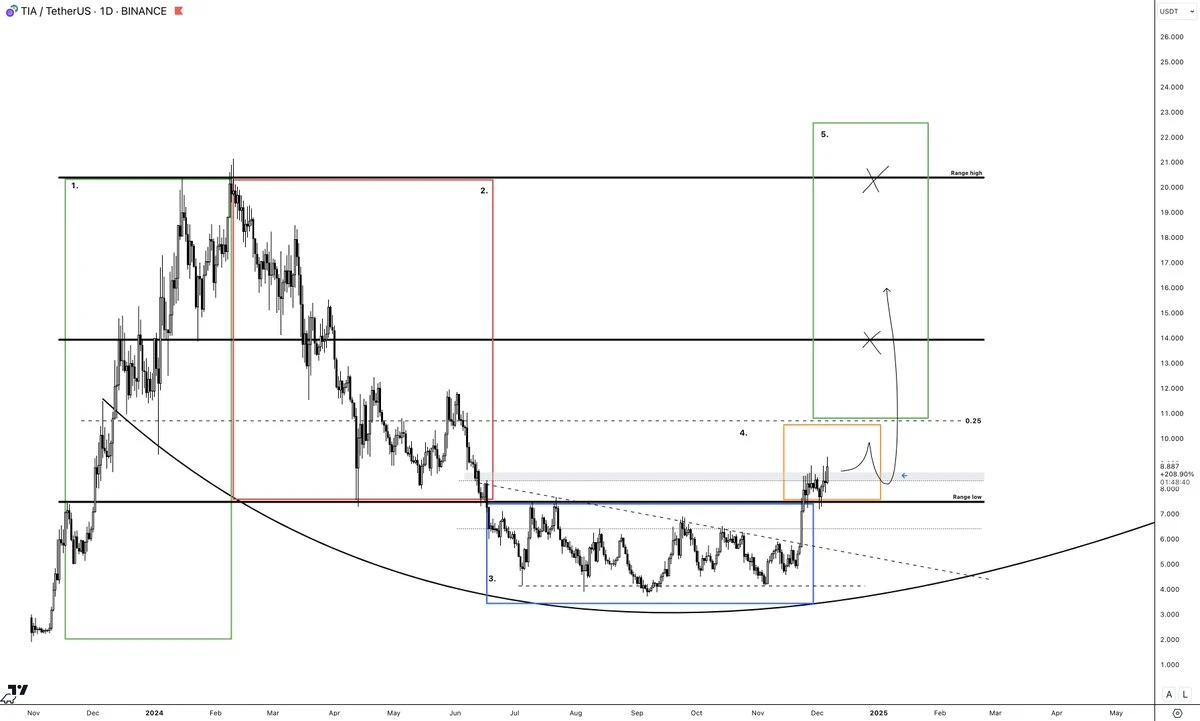 这个代币的价格结构非常完美,目前处于阶段 3。我会等待价格明确突破并收复关键位置后再入场。