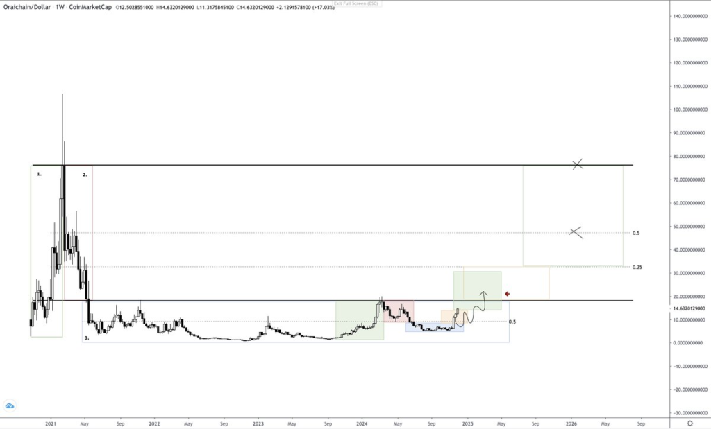 $ORAI 是一个元老级的 AI 代币。上周,它在短周期市场结构中成功收复了阶段 4(橙色区域),因此我再次𧹒入了一些仓位。