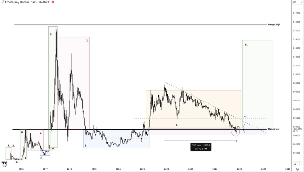 - 比特币主导地位 (Dominance) 可能会进一步下降,而 ETHBTC 比率将会走高。