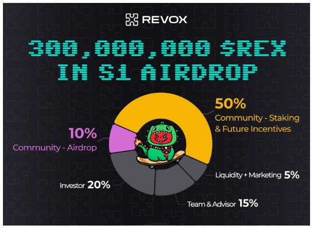 3.参与未来代币空投。对于在 REVOX Studio 构建或在 REVOX Marketplace 分发的项目,sREX 持有者将有机会根据其参与程度和持有量获得空投代币。