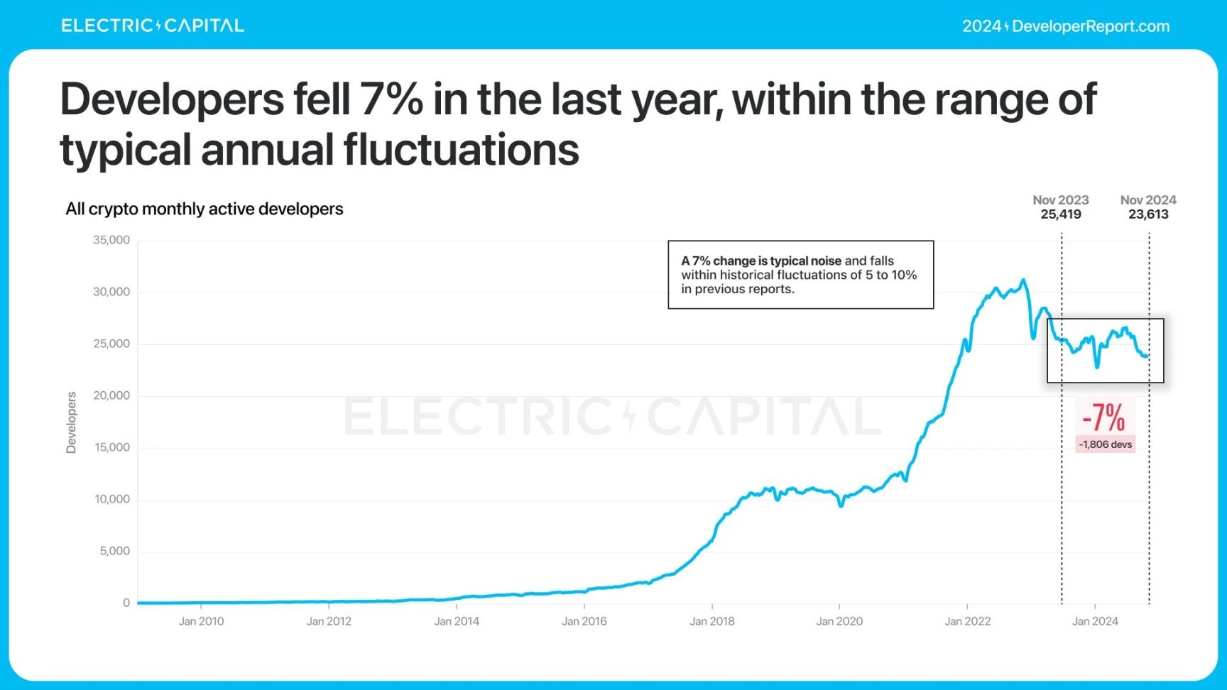 过去一年,每月活跃开发者数量略微下降了 7% 。