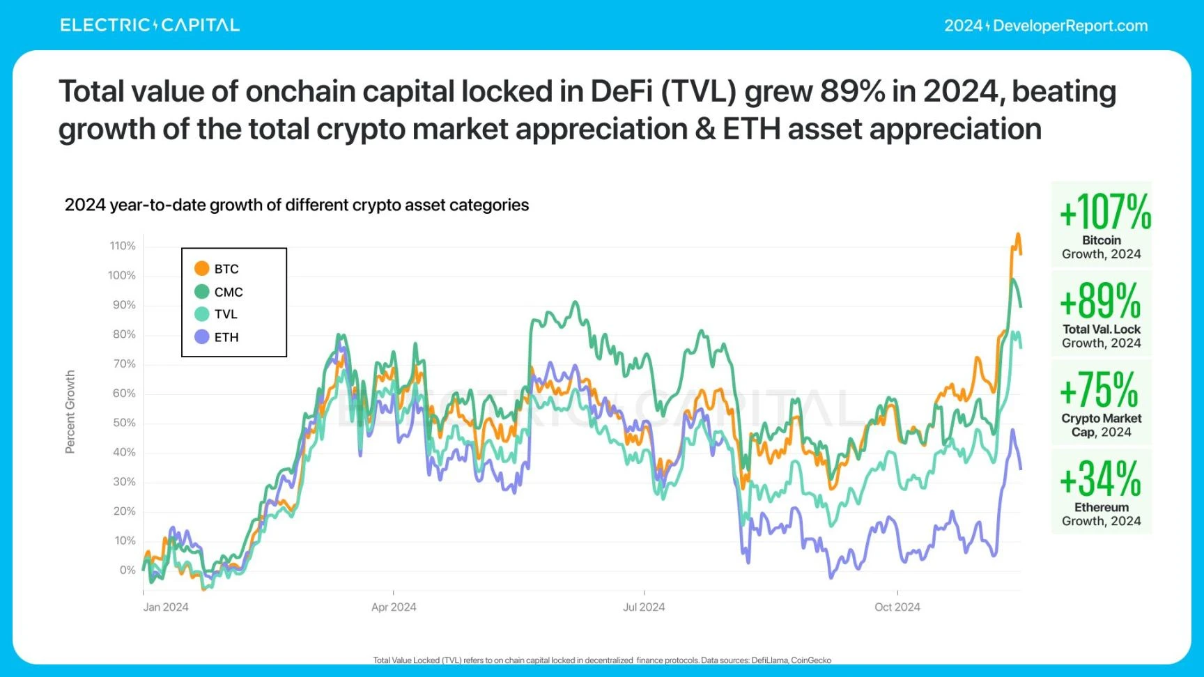 2024 年,DeFi 的总价值锁仓(TVL)增长了 89% 。