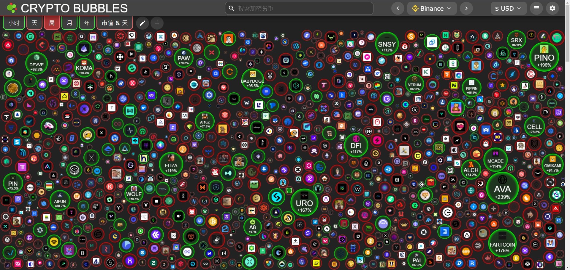 本周 加密市场 整体情绪偏多,AVA、Pino、Fartcoin 分别以 +238%、+195%、+173% 的涨幅领跑,主流币普遍上涨。根据 Blockchaincenter 数据 显示 ,目前山寨币季节指数为 69(下降 18) ,显示山寨币热度有所回撤。