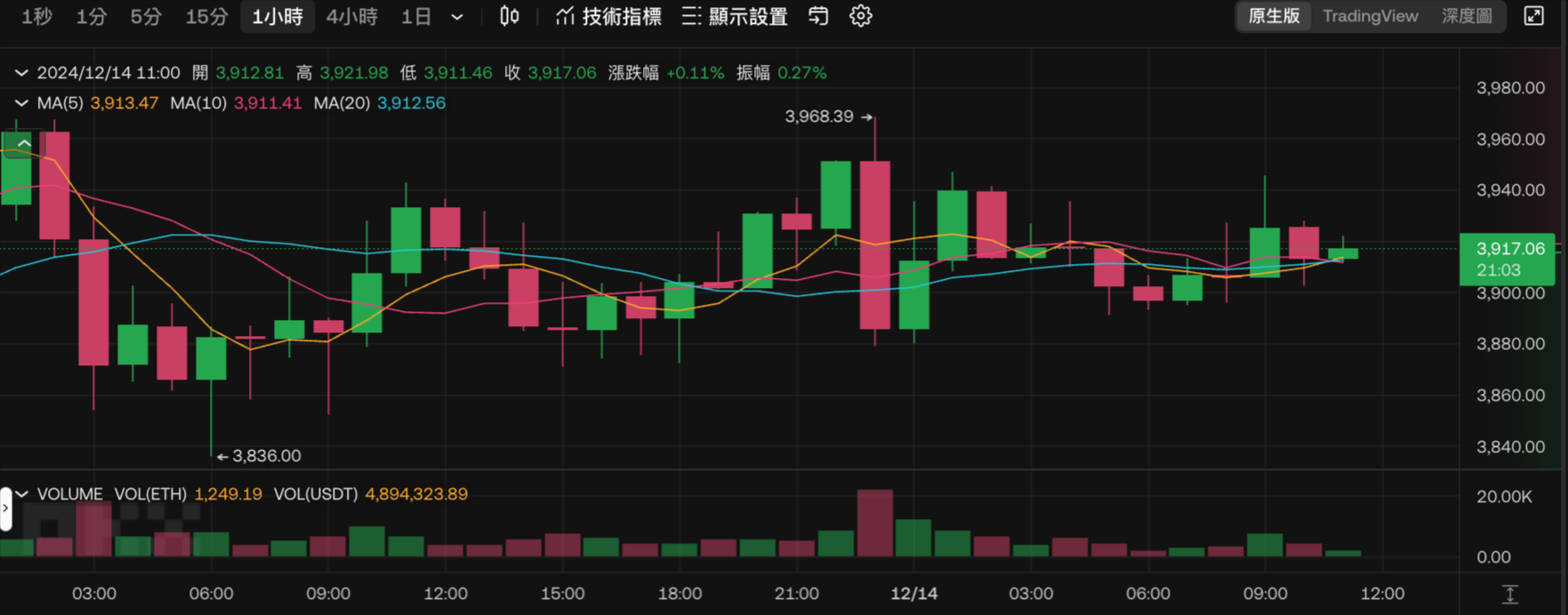 以太坊币价方面,ETH 周六凌晨一度涨破 3,968 美元后,涨势随即熄火,回落至 3,900 美元上方盘整,截稿前暂报 3,917 美元,近 24 小时下跌约 0.1%。