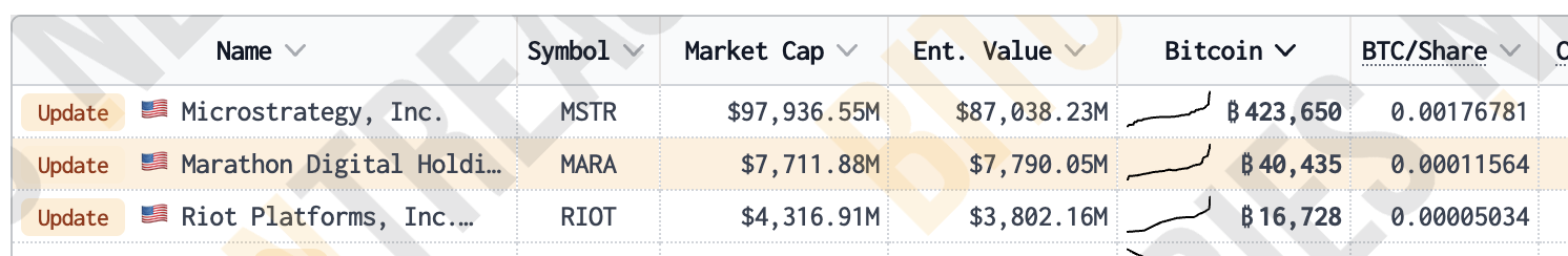 回顾近期动向,12 月 10 日,比特币矿企 MARA 宣布以每枚比特币平均 96,000 美元的价格购𧹒了 11,774 枚比特币,总交易金额高达 11 亿美元,此次大规模购𧹒比特币,MARA 采用了零息可转换债(Zero-Coupon Convertible Notes) 的融资方式,这类债券允许公司发行无需支付利息的债务,并可在未来将其转换为股票,目前,MARA 是全球持有比特币第二多的上市公司,拥有 40,435 枚 BTC,仅次于微策略。
