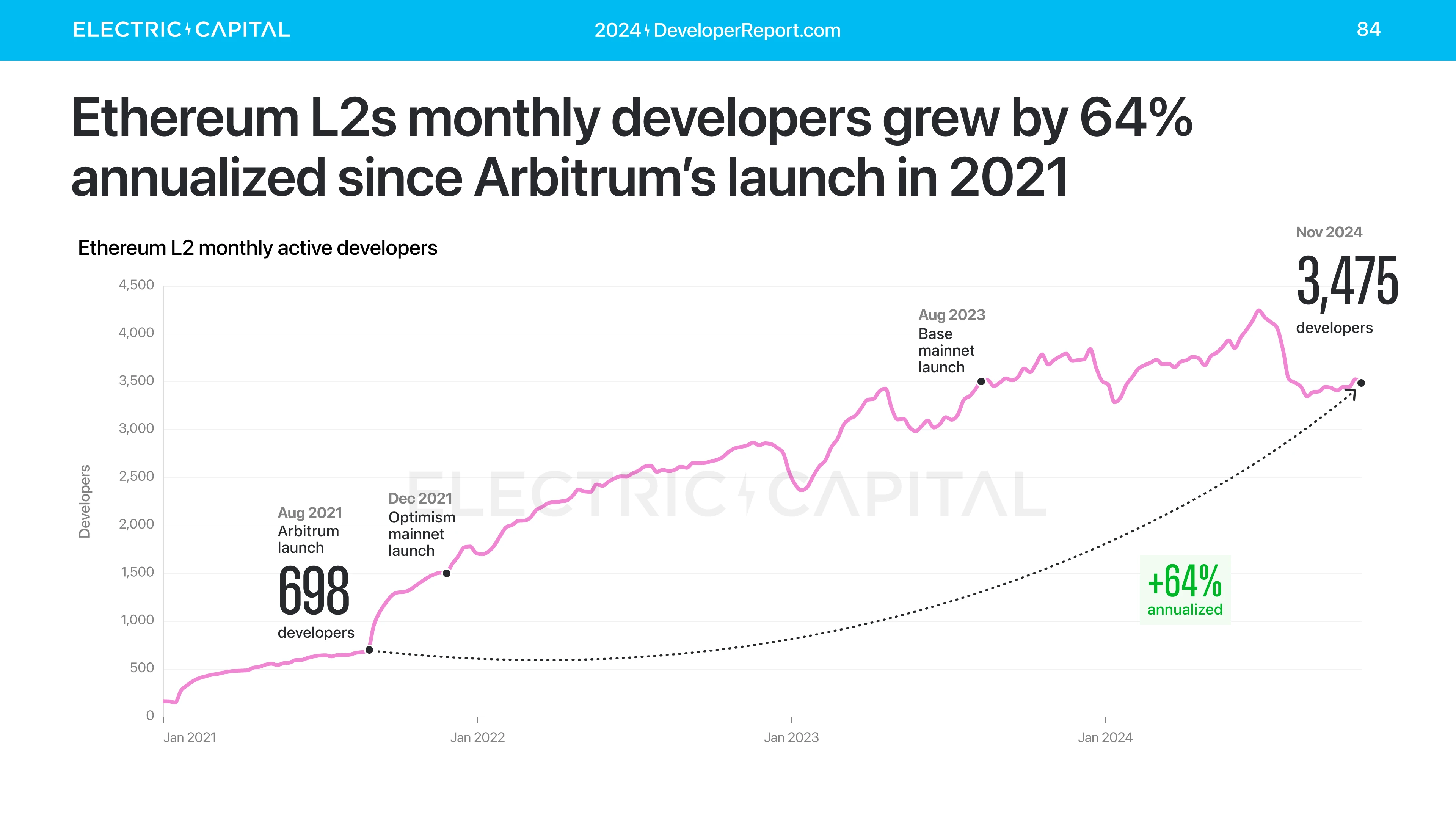 Electric Capital年度开发者报告:3.9万新开发者加入,超过一半以太坊开发者致力于L2