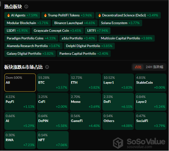 但时间来到今日,配合大概率降息的基本面,市场不出意外的开始拉涨,比特币短时突破10600,再创新高,而以太坊也冲破4000美元,加密板块更是全线上涨,RWA板块领涨7.23%,沉寂已久的NFT板块也上升7.06%。