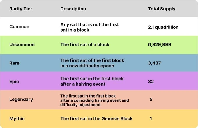 当时还流行在稀有聪上铭刻稀有聪铭文,当时的一颗 uncommon 稀有聪贵极了,大概要 1200 u,如果是 rare 的稀有聪,甚至开价在 10 个 BTC。后来,Blob 团队成交过一个 Epic 稀有聪,价格是 33 BTC。