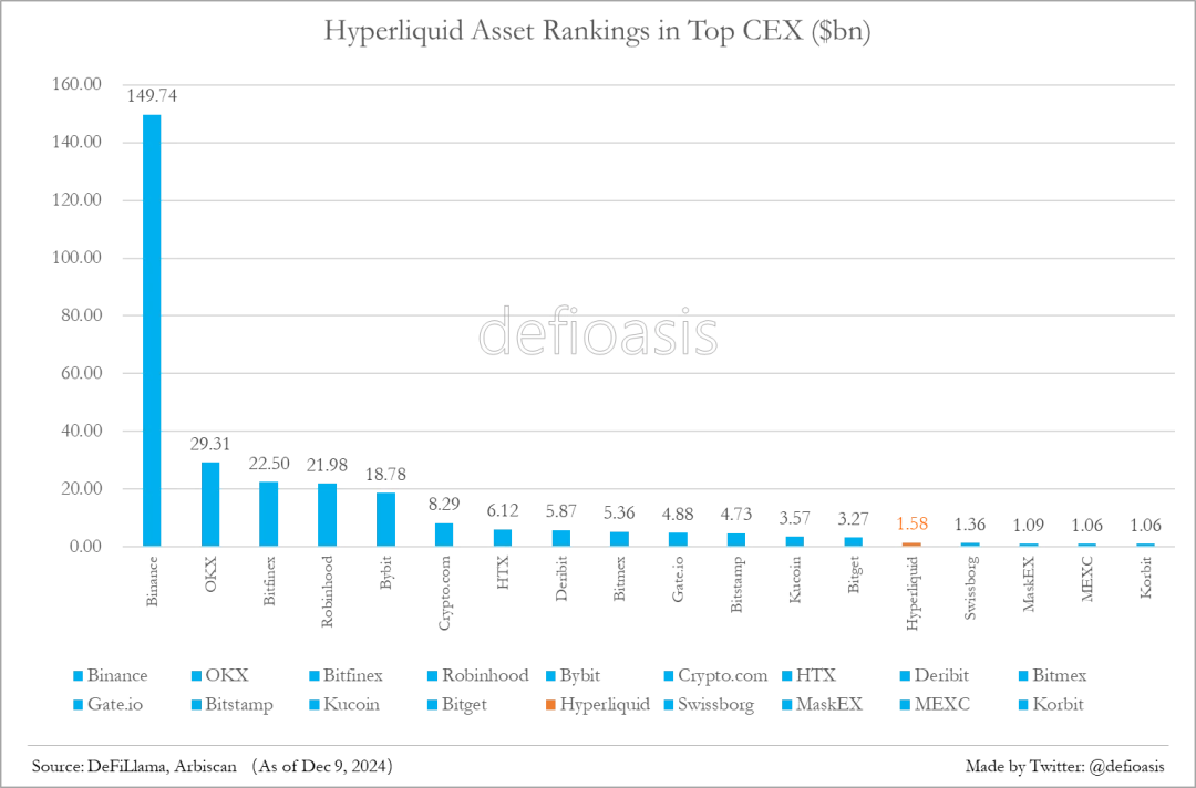 图 3 HyperLiquid 和各个 cex 的资产沉淀对比