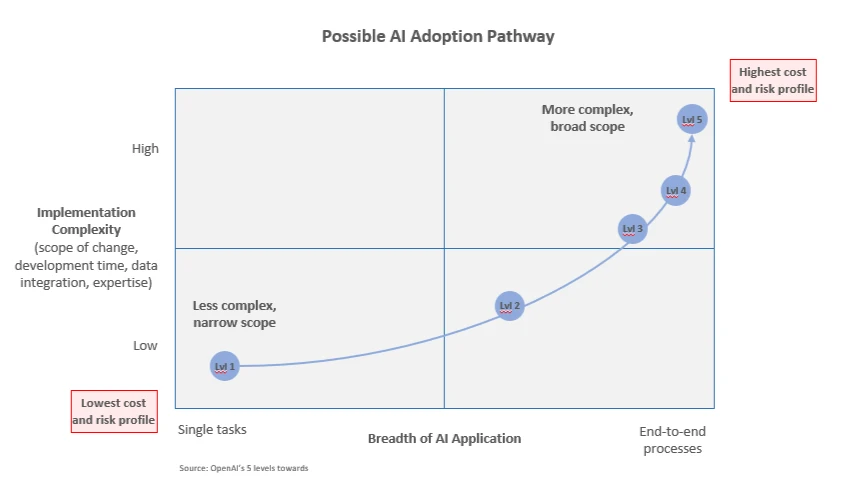 AI agents 一词来自于 OpenAI 的路线图。Sam Altman 将 AI 应具有的能力分为 5 个部分,其中第三步就是接下来几年内会频繁接触到的,AI agent。