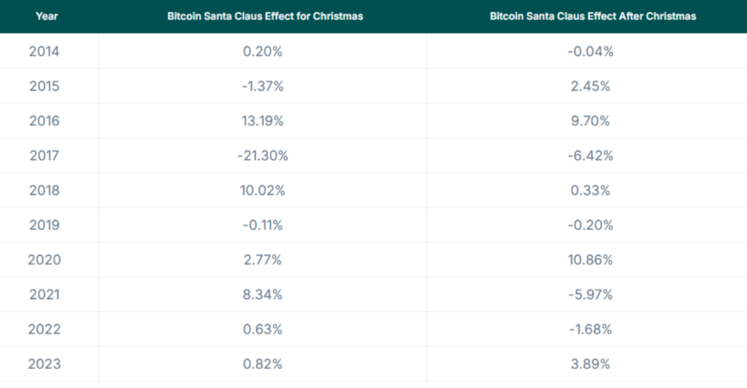 3、过去 10 年加密市场的「圣诞老人效应」