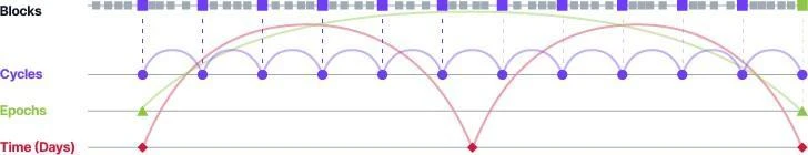 如图 10 所示,一个纪元进一步划分为多个 周期(Cycle),每个周期的典型持续时间为 约一天。在每个周期中,部落中的节点会通过 Supra 的 VRF(可验证随机函数) 被随机分配到不同的氏族。例如: