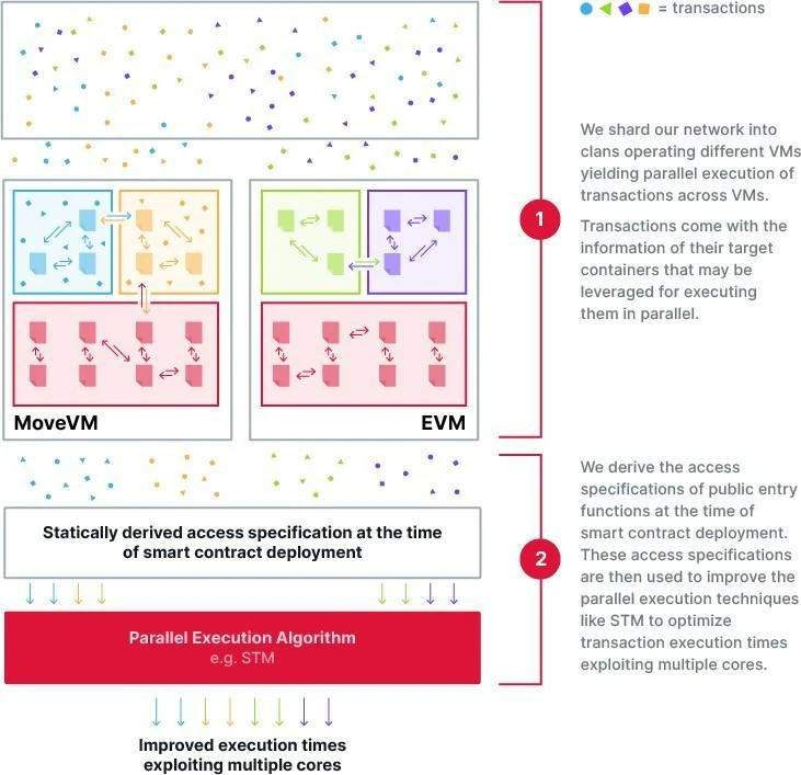 我们提出了一种创新的 STM 并行执行算法,不同于 Aptos 的 BlockSTM,我们的设计无需调度器即可高效解决冲突。这种方法在性能和架构上与 BlockSTM 具有可比性,目前我们正在对该设计进行深入评估,以验证其在实际应用中的优势。