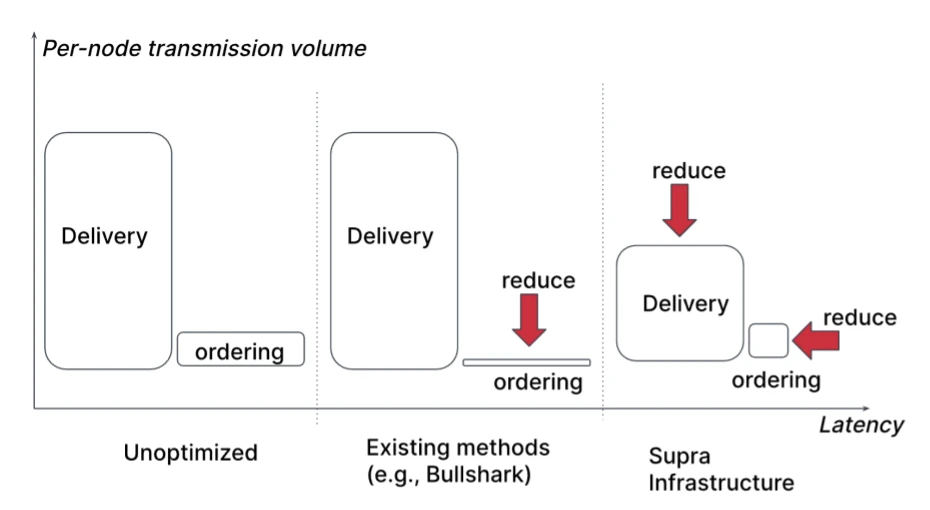 Supra L1 区块链的核心是排序服务,其共识协议负责交易排序,而交易数据的传播与排序服务相分离。因此: