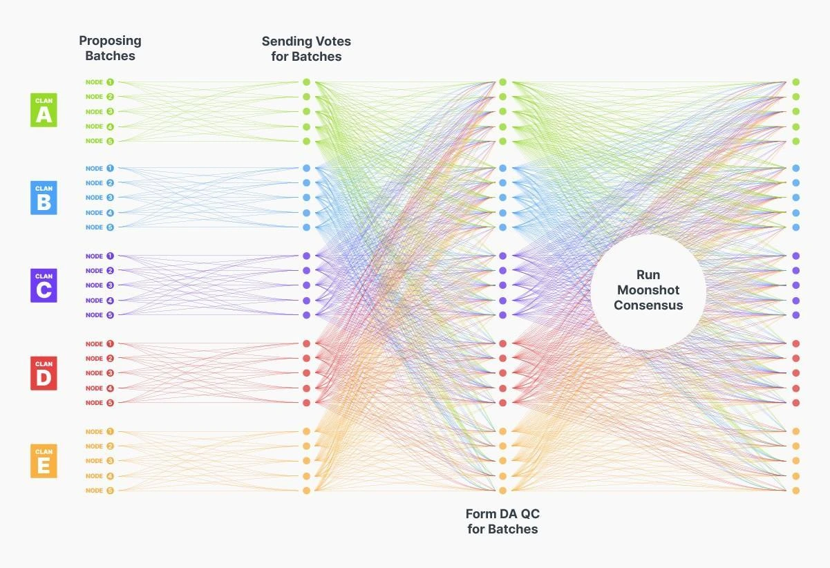 部落节点运行 Supra 的 Moonshot 共识协议。区块提议者通过打包这些 DAQC 及相关批次的元数据来构建区块。