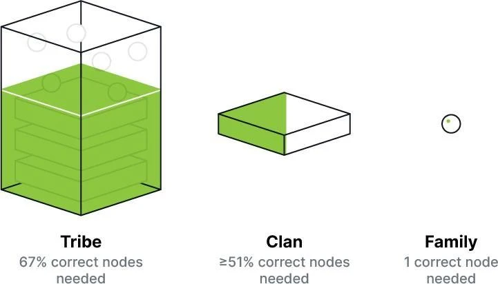 氏族(Clan) 是一个节点委员会,最多容忍二分之一的拜占庭节点;