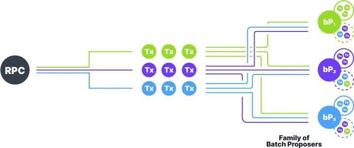 网关 RPC 节点根据对交易 ttt 的基本验证和分类,将其发送到特定批次提议者的主存储(Primary Bucket),并将交易发送至一些其他批次提议者的次存储桶(Secondary Bucket)。