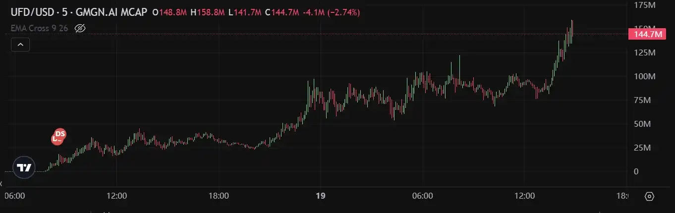 UFD,全称 Unicorn Fart Dust,发布者生于婴儿潮一代,并以此币证明加密货币的价值,被网友们戏称为「老头乐」。该代币一经发布迅速拉升至 30 M 左右, 12 月 18 日晚第二批 Binance Alpha 名单公布后,UFD 迅速拉涨至接近 100 M,随后在今日午间逐渐向上突破至 150 M 左右,目前仍保持较大上涨动力。