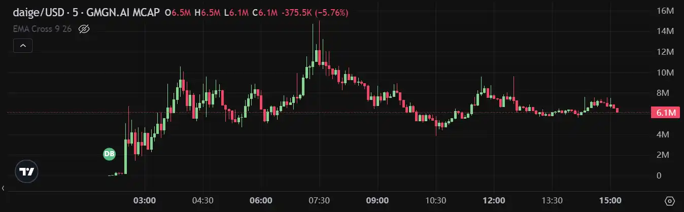 DAIGE 是一只具有感知能力的人工智能狗,也是 Doge 的赛博朋克兄弟,它梦想是能够被 Elon 收养,并殖民火星。DAIGE 是基于 Eliza 框架开发的 AI 产品,创始团队在 AI 和 Web3 方面拥有 7 年以上的经验,之前曾在 Optimism、Filecoin、NATO 等领域推出过产品。高热度的 AI+DOGE+马斯克火星概念,再加上优秀的创世团队,DAIGE 的 buff 叠满,代币发出后 4 h 内迅速拉升至 15 M,之后有所回落,市值一直在 6 M 左右波动。