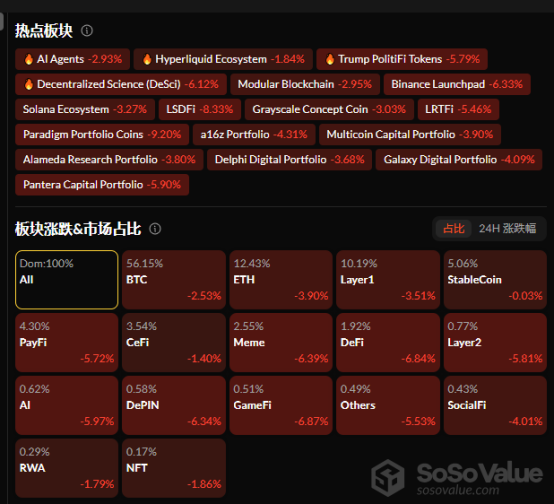 市场流动性的不足从币安新币也可窥见一斑,“宇宙大所”的上币效应正在持续减弱,冲高回落成为了主旋律。据陀螺财经统计,截至到12月19日,11月以来币安上新的10个代币平均跌幅超57.94%,以12月17日刚上的PENGU为例,上线飙升至0.07后快速回撤,现报0.033,跌幅51.81%。
