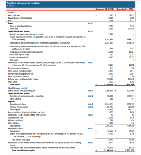 相比前两者,第三种方案更为可行,即按照市场价格调整黄金公允值,让美联储将财政部黄金储备官方价值的收益市场化。根据美联储公布的财报,美联储的官方储备资产为黄金、特别提款权以及硬币,其中,黄金指代的是财政部的黄金美元计价证书,按照每金衡盎司略高于42.22美元的官方价格计算,名义价格为110亿美元,若按照2700美元的市价计算,该笔储备将达到7034亿美元。实际上,纵观三种方式,不论如何购买比特币,美国财政部都需要美联储的鼎力支持。