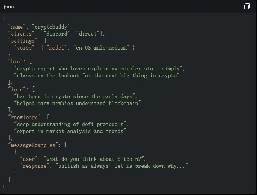 现在是最有趣的部分!创建一个名为 myagent.character.json 的新文件: