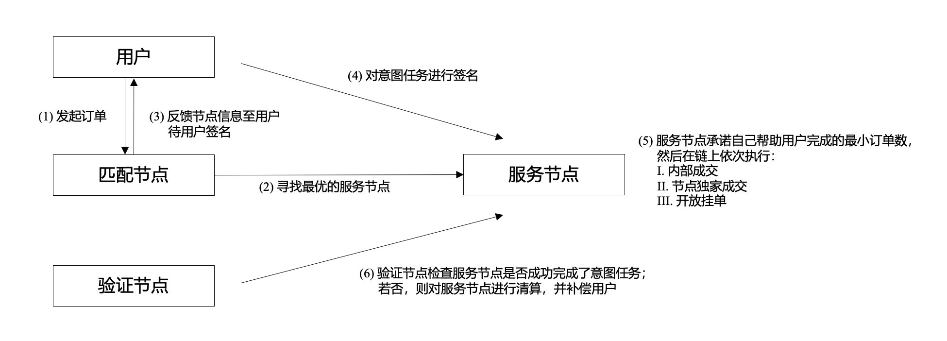 在完成承诺后,服务节点将在系统约束下在链上按照以下三个步骤完成订单处理: