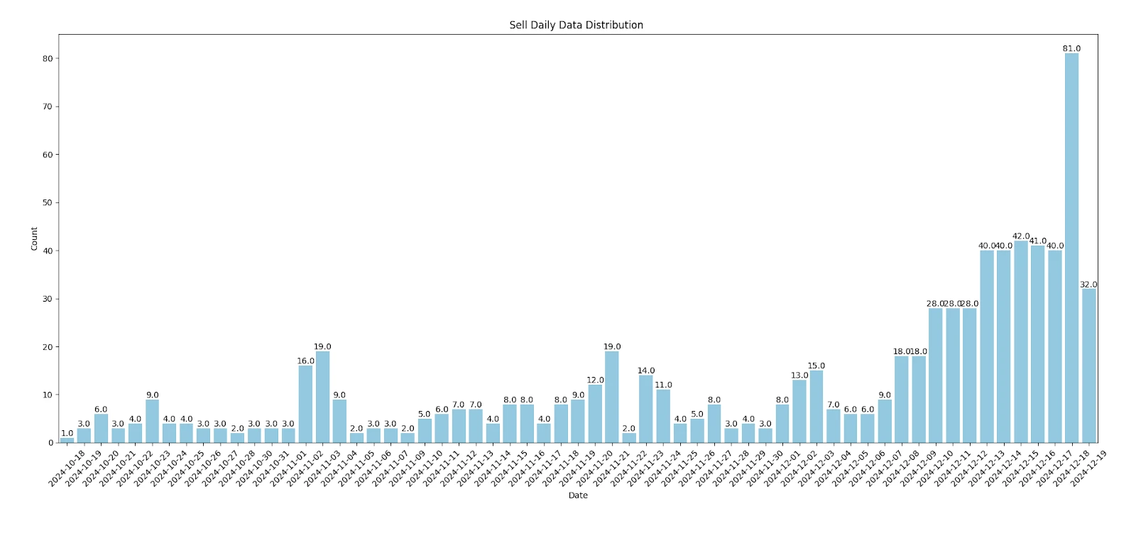 而通过总体数据分析,我们能够看到,Fartcoin 的主力地址事实上并不像 PNUT 此前分析的那样,在早期入场。大多数的主力买入时间还是集中在本月初。尤其是最近一周的时间,大户进场的意愿较强。