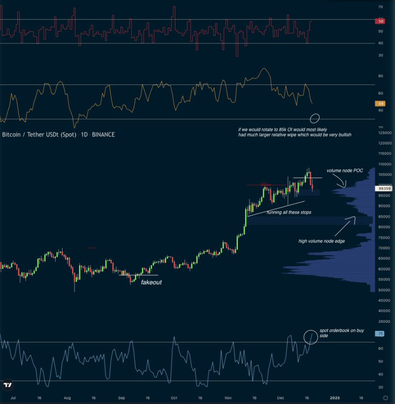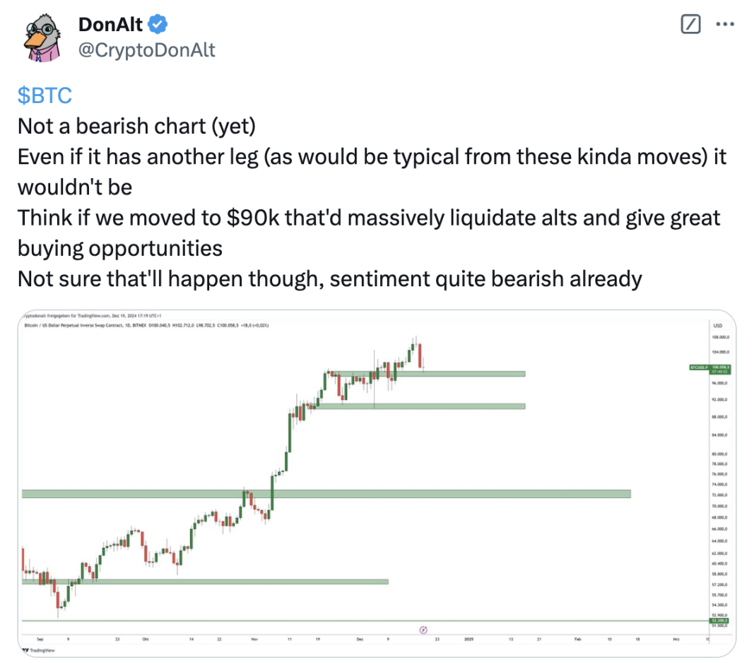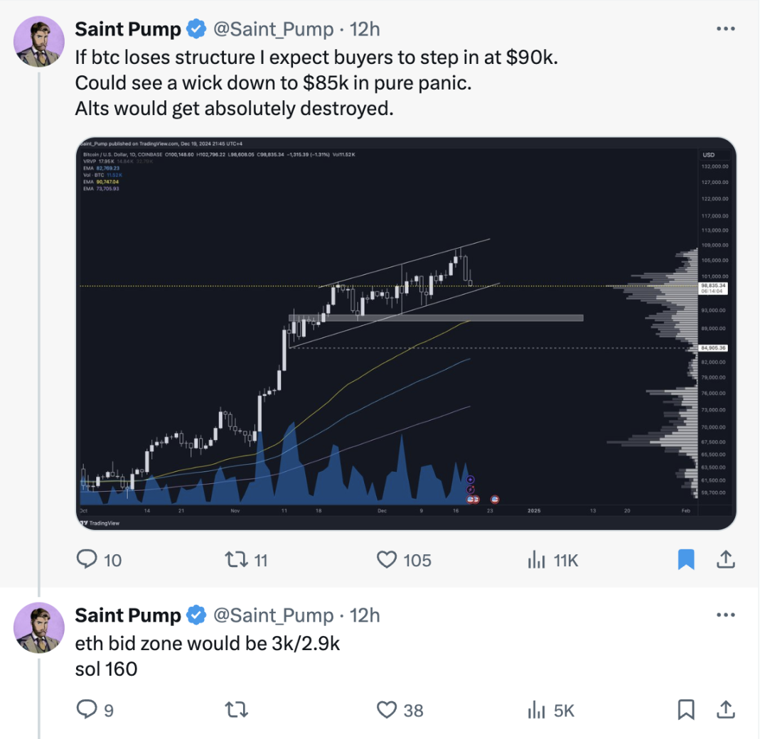 如果比特币结构跌破,我预测买盘会在 90000 时再次出现。在纯粹的恐慌中可能一路跌至 85000 美元。山寨币则会彻底崩盘。