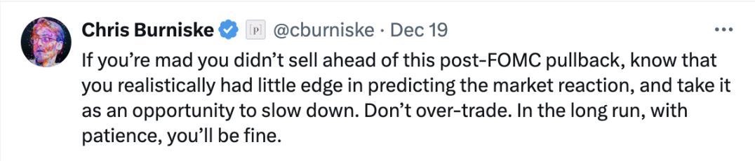 如果你对自己没有在 FOMC 放鹰导致回调前卖出而感到生气,请铭记你在预测市场反应方面几乎没有优势,并将其视为让自己可以慢慢来的机会。不要过度交易。从长远来看,只要有耐心,你就会没事的。
