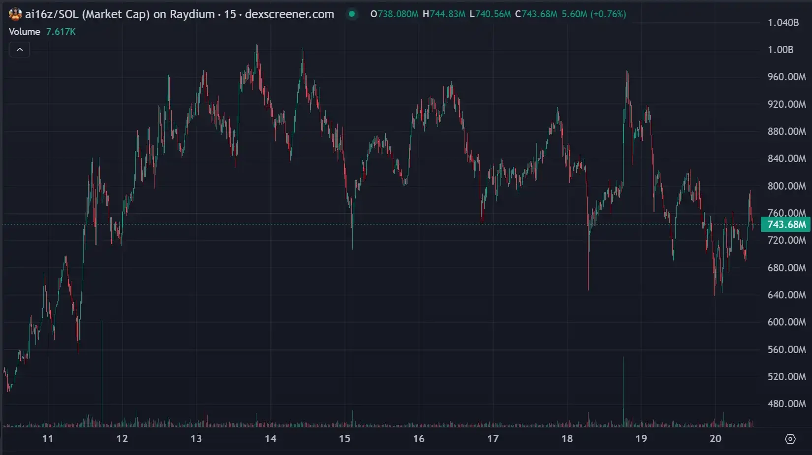 目前,AI16z 的估值为 7.5 亿美元,相比历史最高点下跌了 23% ,这为投资者提供了一个较为低廉的买入机会,但能否继续维持其市场地位,还需要看其是否能够突破当前的竞争压力,继续发展其核心技术与应用场景。