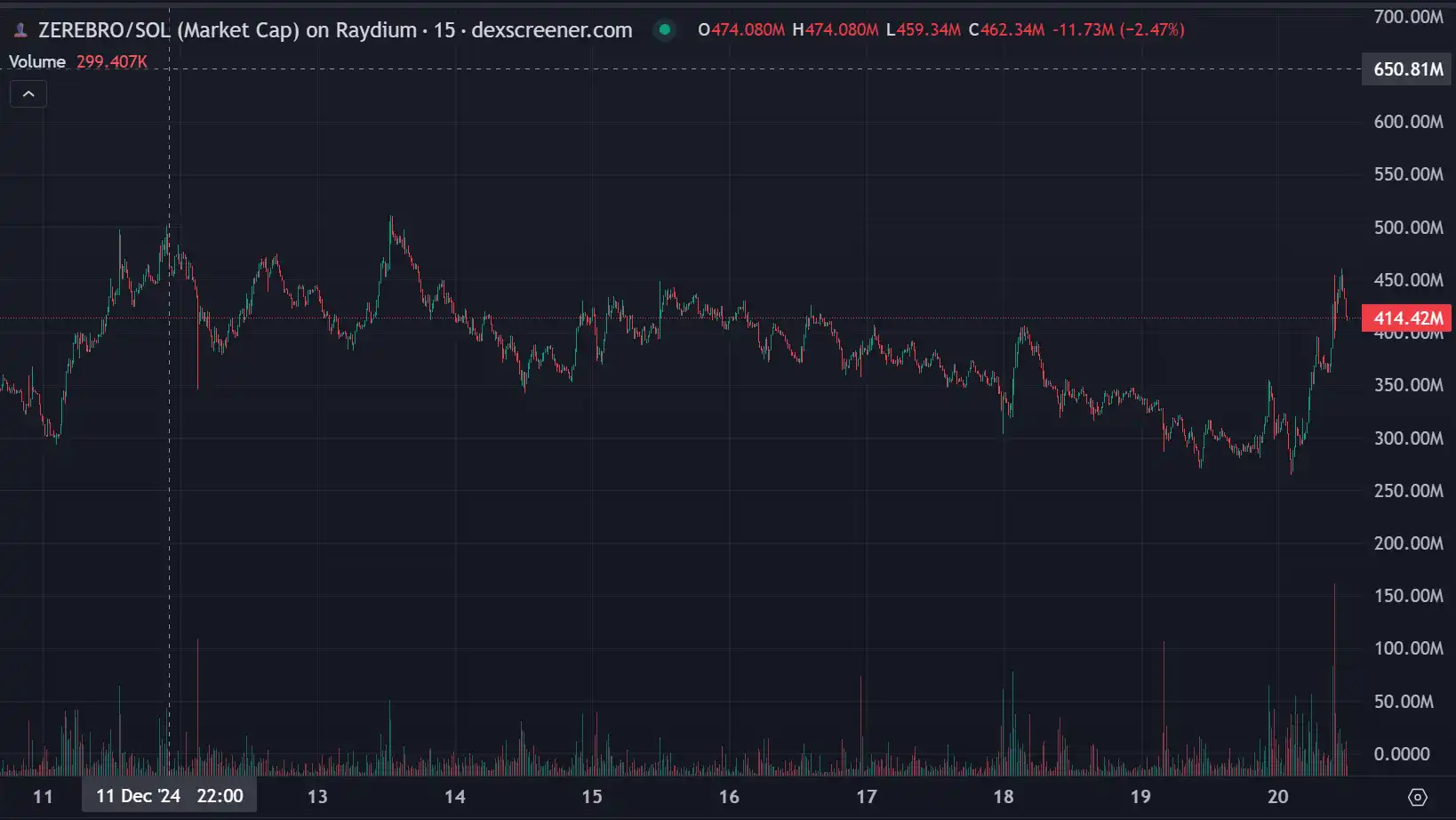 Zerebro 凭借其卓越的艺术创作能力最高市值曾一度触及 624.15M,当前的交易量保持在 37.2M,它依旧在高位盘整波动较小,展现出强大的市场支撑。尽管有不错的技术背景,但 Zerebro 当前的代币应用场景仍未完全明确,这给投资者带来了一定的不确定性。未来的路径是否会拓宽,代币是否能找到更具实际价值的用途,仍然悬而未决。