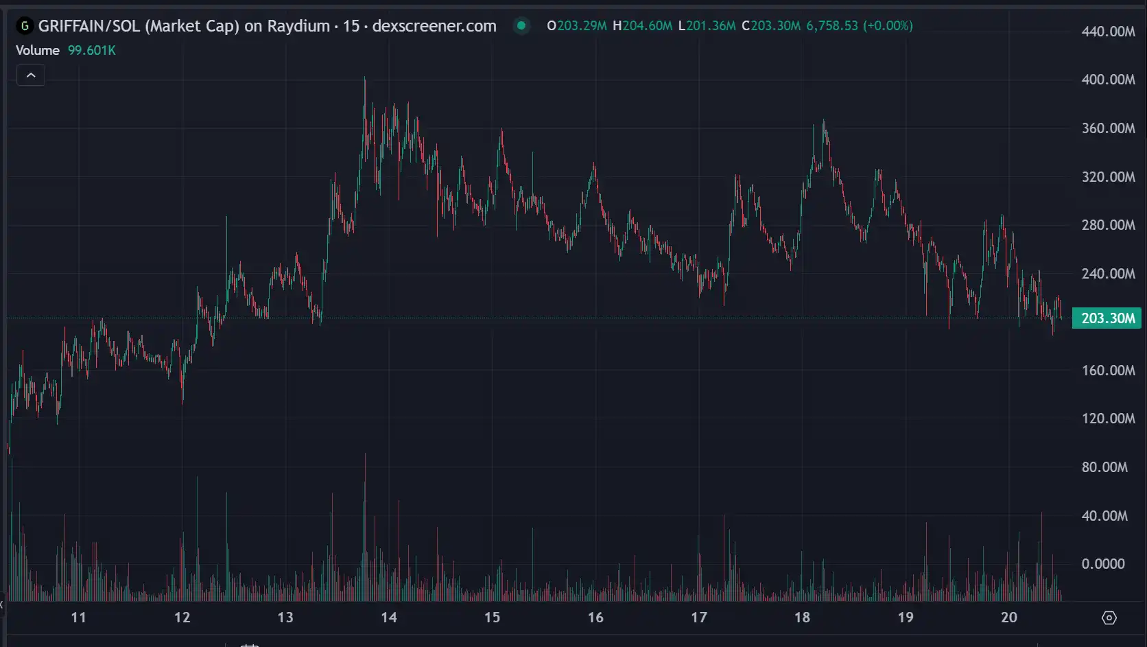 Griffain 作为最接近 Agentic APP 的项目之一,项目当前的交易量为 40.3M,市值一度飙升至 405M,然而在过去的 10 天中,其波动性也显而易见,展现出强烈的高位震荡特征。