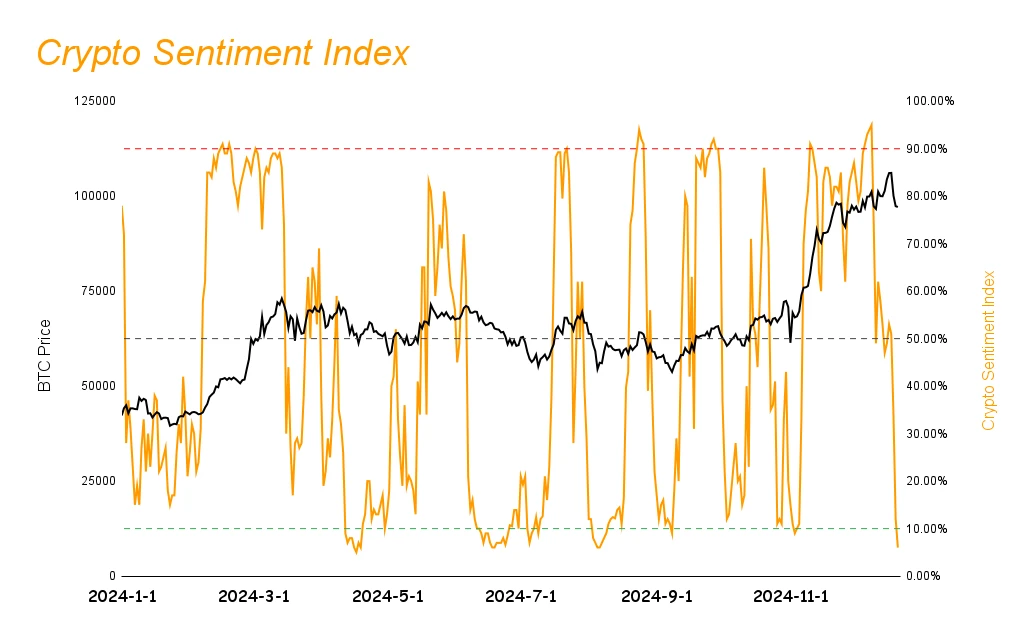 市场情绪指数由上周 53% 回落至 7% ,处于极度恐慌区间。