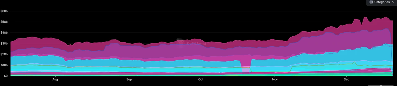 Defi 各个赛道 TVL(数据来源:https://defillama.com/categories)