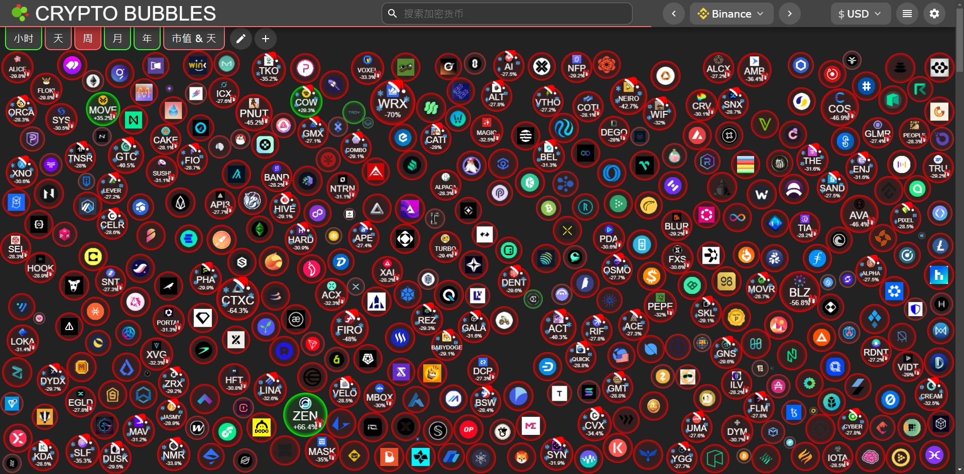 本周 加密市场 整体情绪偏空,Horizen、Movement、CoW Protocol 分别以+67.3%、+35.6%、+29.4% 的涨幅领跑,主流币普遍下跌。根据 Blockchaincenter 数据 显示 ,目前山寨币季节指数为 47(下降 12) ,显示山寨币热度有所回撤。