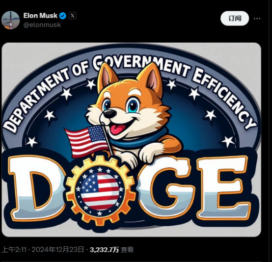 而在法案事件结束后,马斯克也表现雀跃,再度发布政府效率部LOGO,顺便让DOGE也深藏了一波功与名。 从目前来看,效果虽然不如以往明显,但币价还是有所回升,在12月20日跌至0.26美元后,DOGE回暖至0.35美元,现在0.31美元震荡。