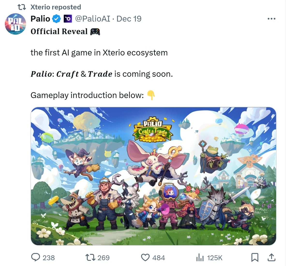 Palio:Craft and Trade: 一款结合对话式 AI 和交易机制的创新游戏,将于 2025 年第一季度上线。