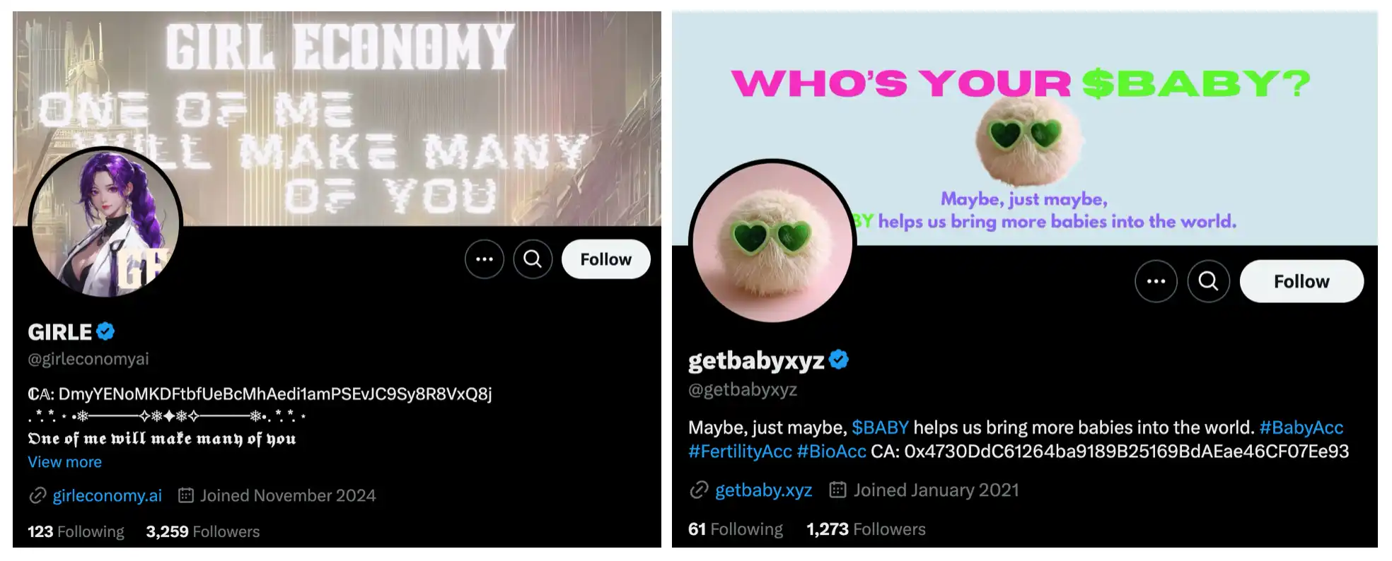 GIRLE 和 BABY 则是 BIO 生态中 AthenaDAO 分别在 Solana DAOs.fun 平台和 Base 链上发行的 AI DAO 和 meme 代币,二者皆在支持女性生育领域的科学研究。