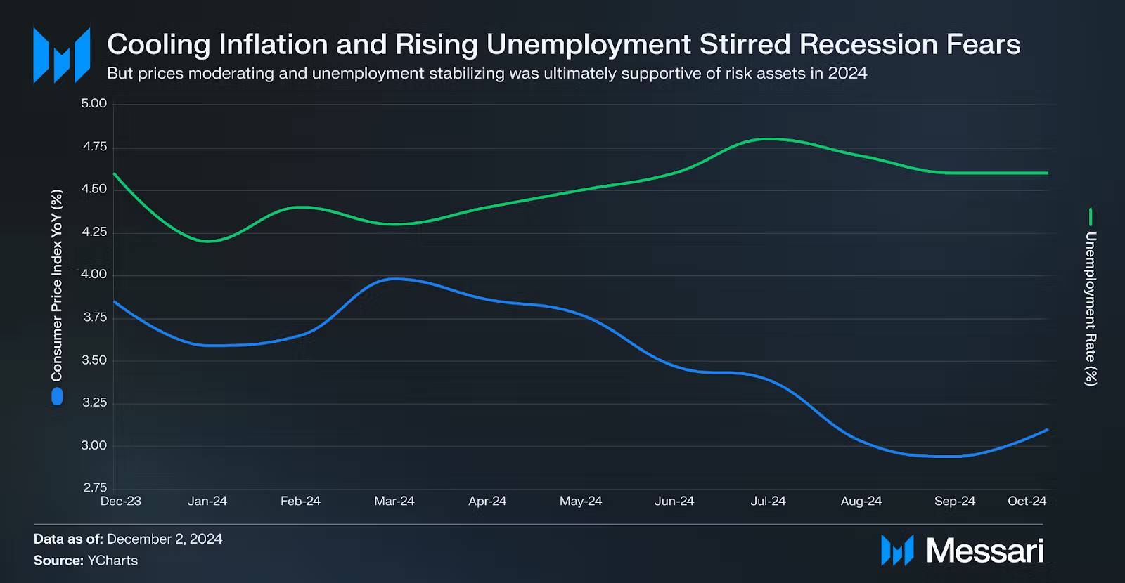 2024 年经济走势打破了多数悲观预期,美国经济展现出超预期的韧性。美联储得以在 9 月和 11 月分别实施 50 和 25 个基点的降息,实现了相对平稳的政策转向。