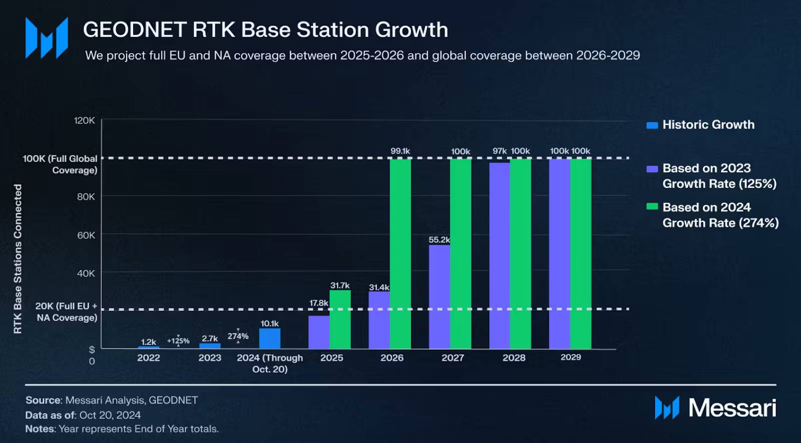 - 预计 GEODNET 等 RTK 网络将扩大供应方,到 2025 年底为欧盟和北美高价值地区提供 90%-100% 的覆盖率。此外,年收入可能会增长到超过 1000 万美元;