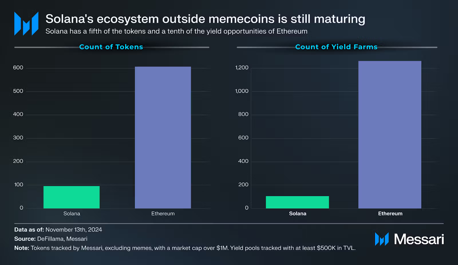 - 将自己定位为投机场所,尤其是通过 Memecoin 交易。生态系统钱包的无缝用户体验,以及 Pump.fun 和 Moonshot 等平台,使代币的发行和交易变得比以往更容易;